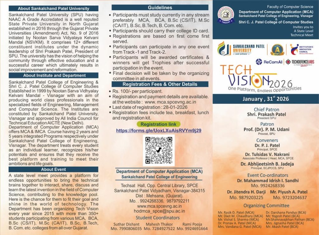 #techvision2026 #10yearsoftechvision #innovations #TechMeetsArt#SPU #SPCE #FCS #cjpccs #MCa #BCA #techevents#SankalchandPatelCollege #CJPCollege #CelebratingSuccess #RegisterNow